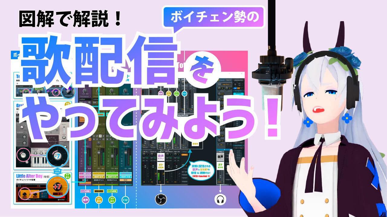 今回はボイチェンで声質を変えている方向けの歌配信(カラオケ)のやり方を、主に音周りを中心に整理したのでお話ししたいと思います。ボイチェンをするとカラオケ音源とのピッチ(音の高低)の違いだったり、遅延の問題(ボイチェンはカラオケ音源に対して若干遅延が生じる)があるので、これらをクリアするためにはちょっと工夫が必要になります。その辺りを踏まえて解説します!
